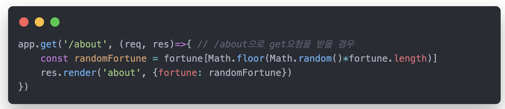 - 어바웃 페이지에 '포춘쿠키'를 표시한다고 가정해보자.