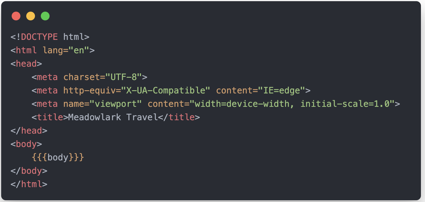 - {{{body}}} 부분의 표현식은 각 뷰에서 HTML로 바뀐다.