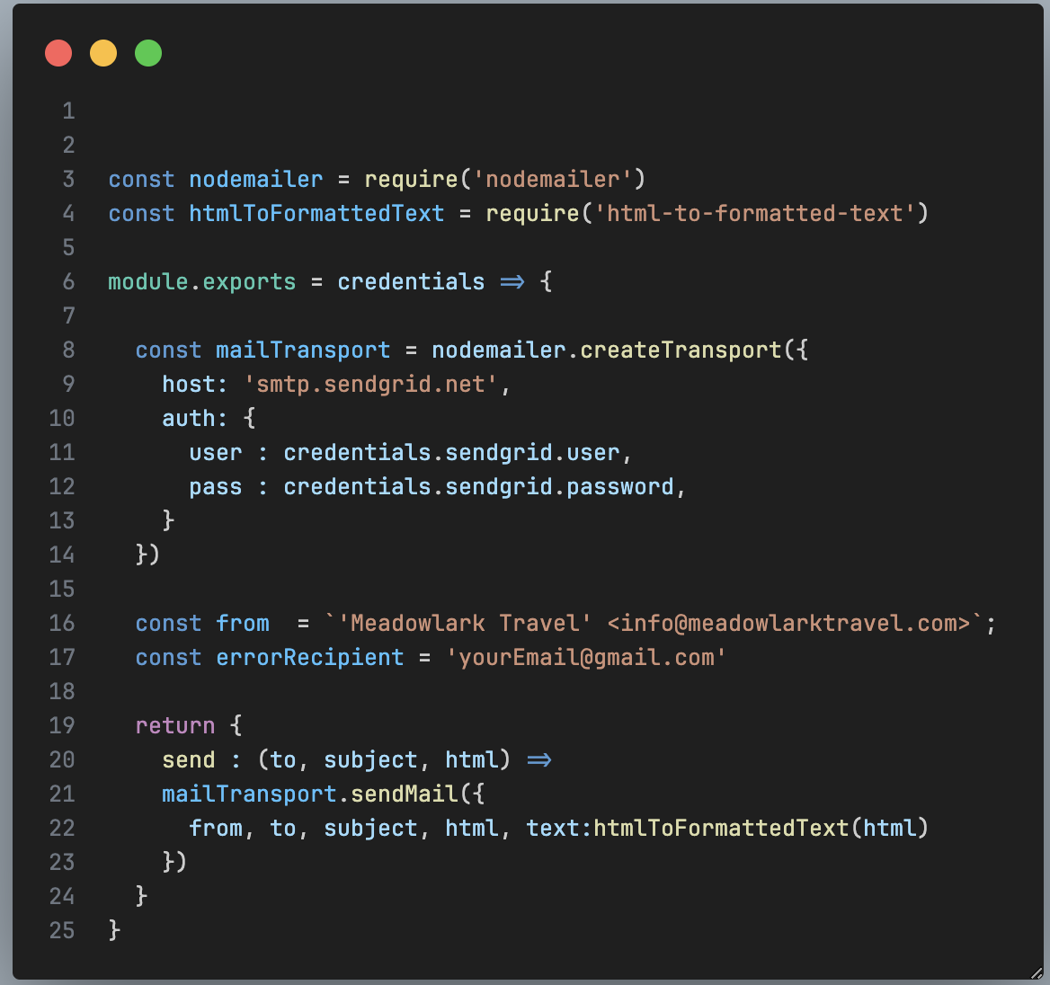 노드/익스프레스에는 이메일 전송 기능이 들어있지 않아, 서드파티 모듈을 사용한다. 여기에서는 노드메일러를 사용한다.