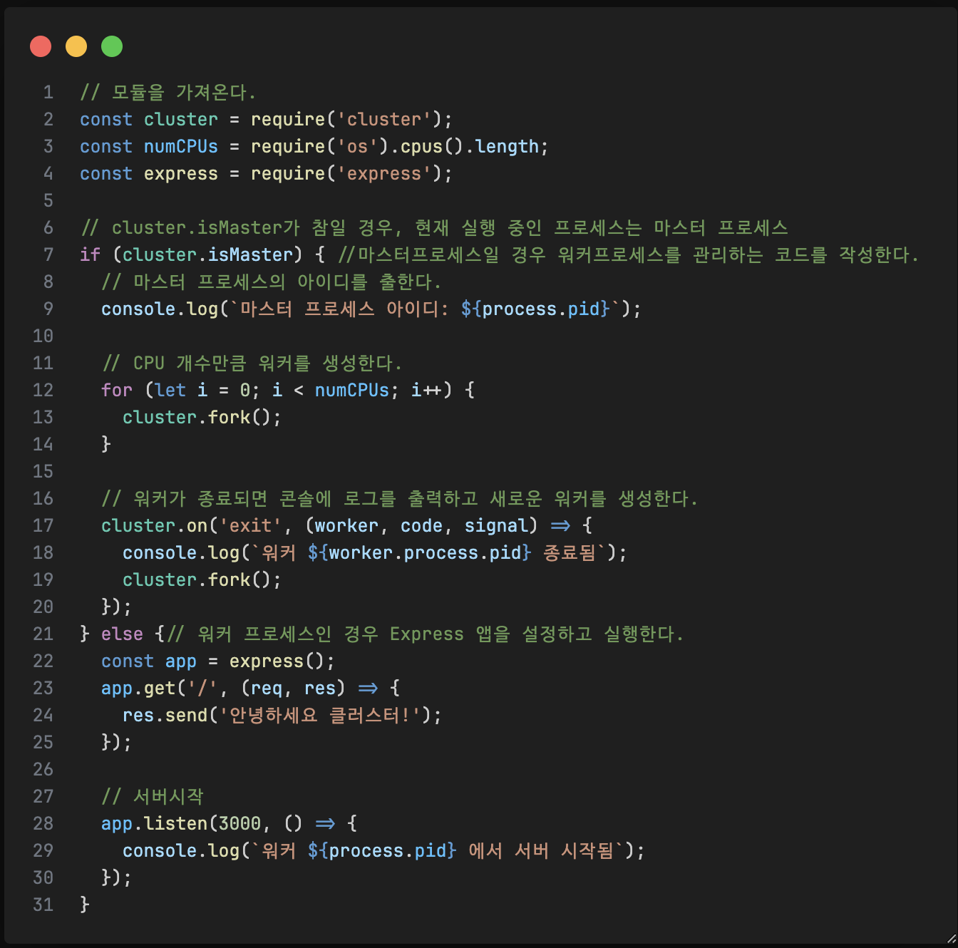 클러스터 지원을 추가해보자 (내장된 cluster 모듈을 이용한다)