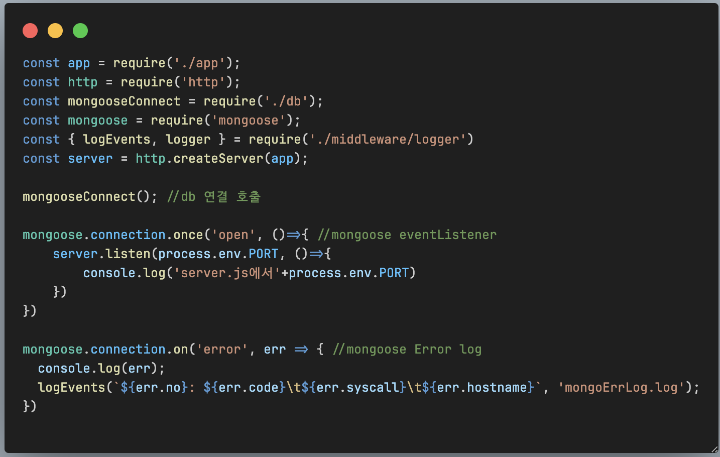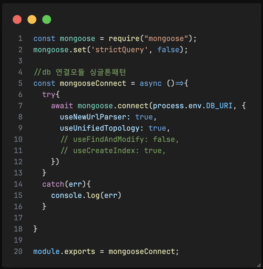 - 거의 표준화 되어있는 MongoDB의 사용법이다. MongoDB있으면 무조건 쓴다고 봐야한다.
