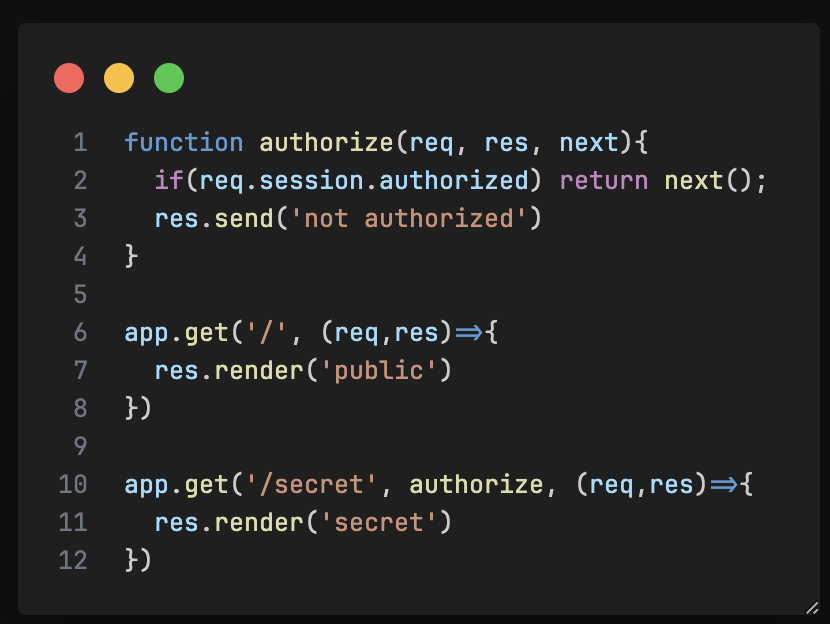 - next()를 통해 다음 미들웨어로 넘길 수 있다.