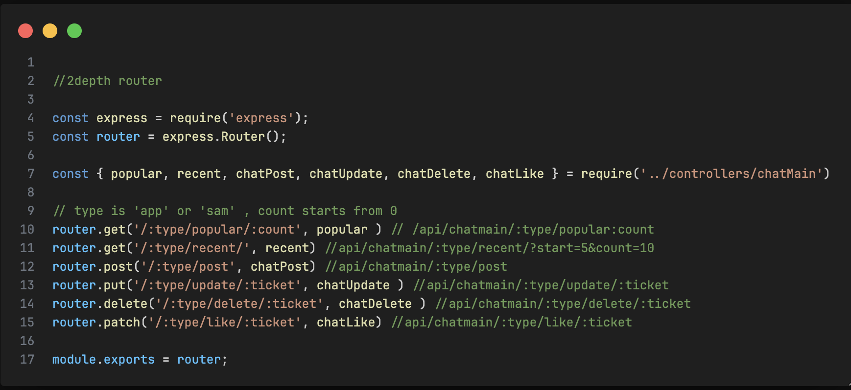 - 각 js 파일들에게서 2차분기를 해서 controllers의 로직들을 호출한다.