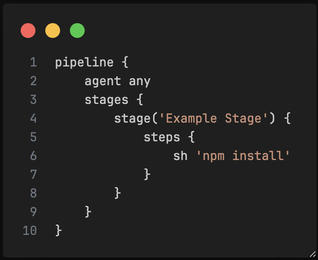 - stages 블록은 파이프라인의 여러 단계다. 각 단계는 stage 블록으로 정의되며, 하나 이상의 steps 블록을 포함한다.