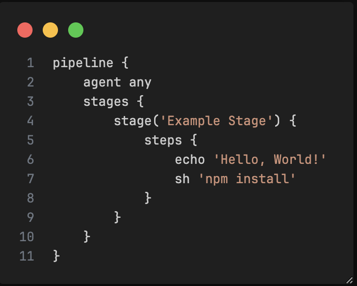 - Pipeline 스크립트는 "Jenkinsfile"이라는 파일에 작성되며, Groovy라는 프로그래밍 언어로 작성된다.