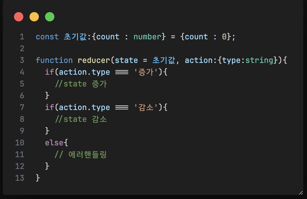 - reducers 필드에 함수 만들 때 파라미터에는 타입지정 안해도 된다. 알아서 해준다.