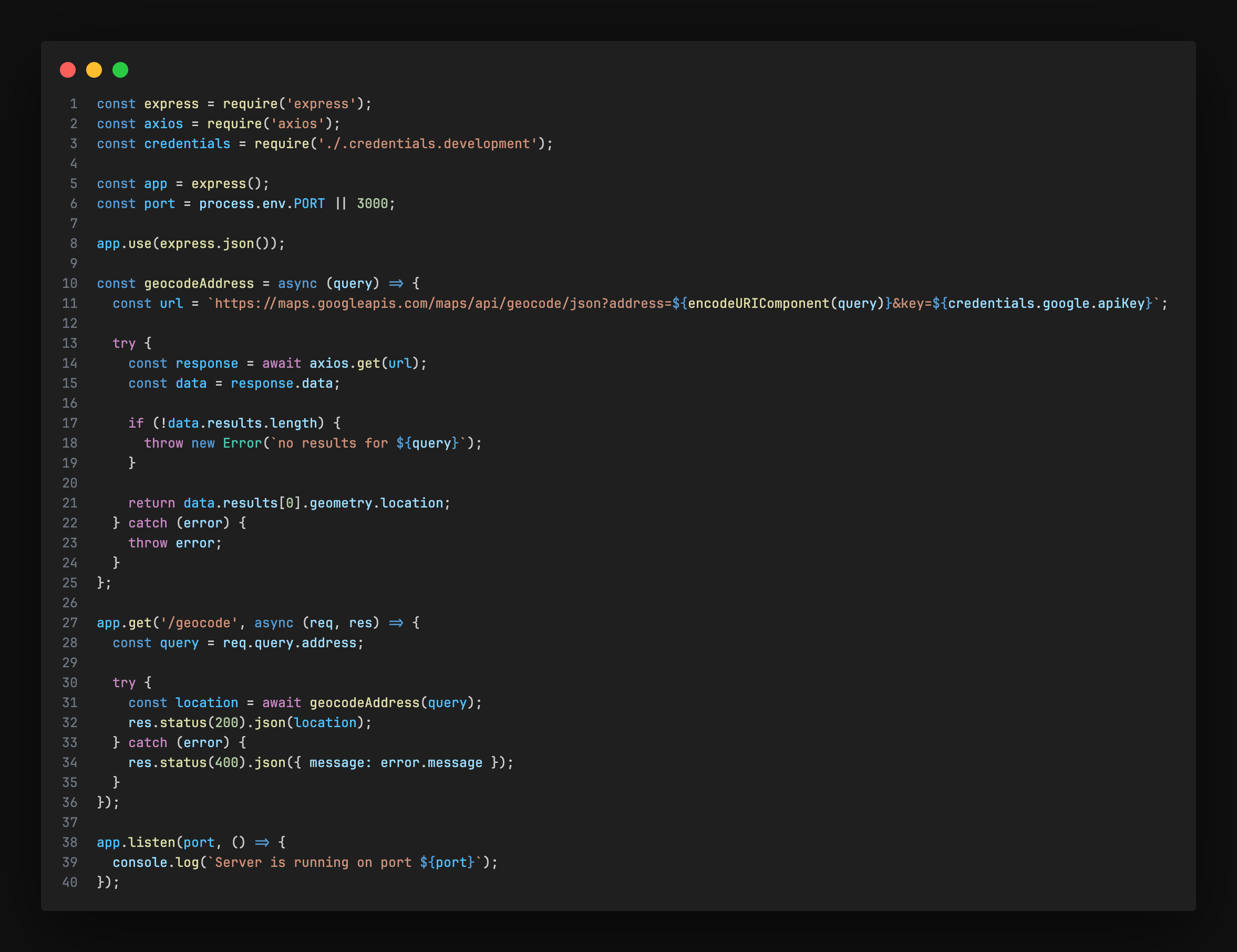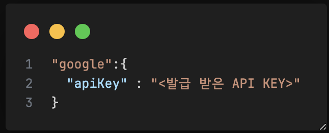 - API키를 얻었으면 .credentials.development.json 파일에 추가한다