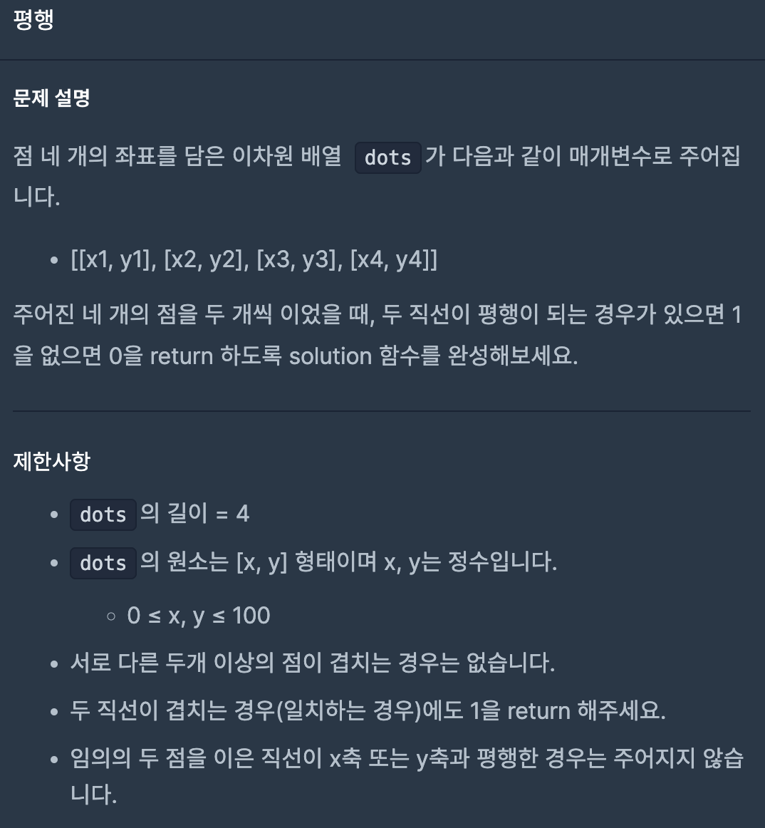 3) newArray에 중복값이 있으면 평행한 선분을 그을 수 있다.
