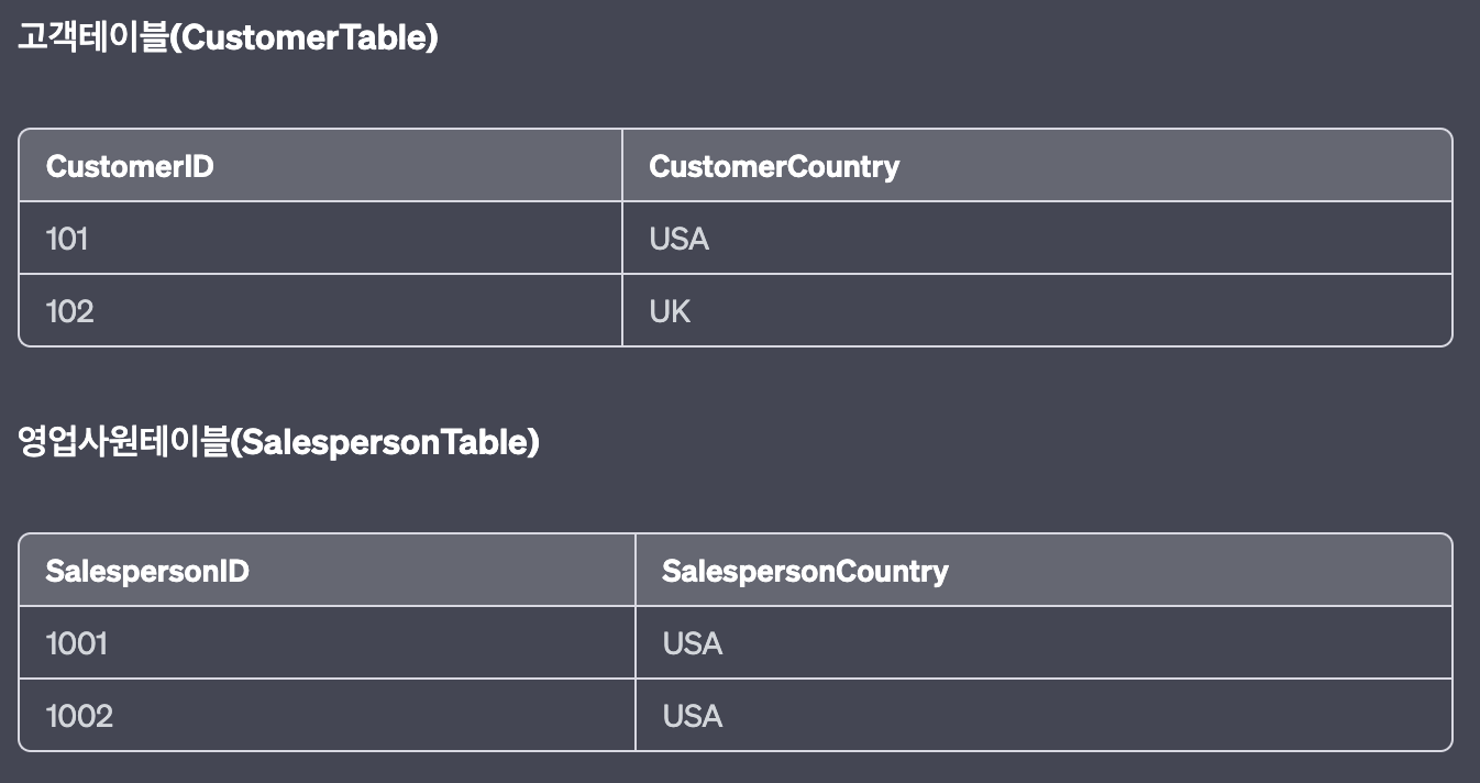 분리된 고객테이블과 영업사원테이블
