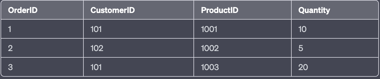 주문테이블 : 누가 어떤상품을 얼마나 주문했는지가 명확해진다. ProductID가 Foreign Key가 된다.
