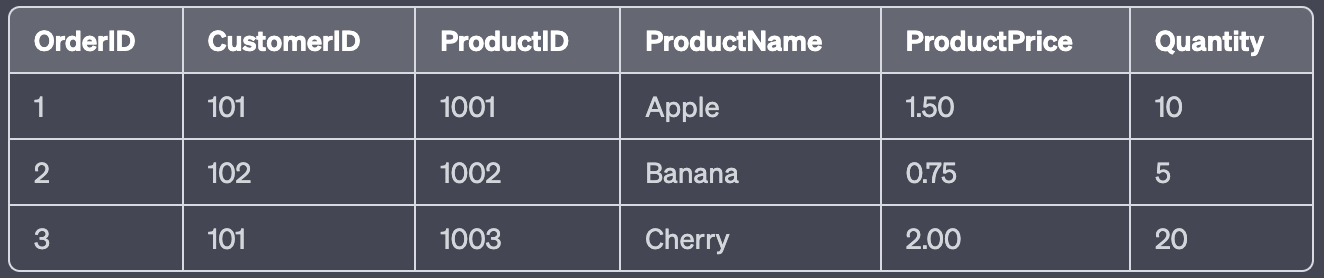 - 해당 테이블에서 기본 키는 OrderID, ProductID이다.