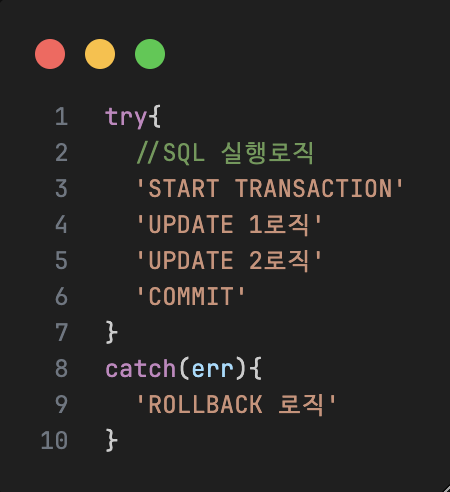 - 쿼리문 하나가 에러/실패라면 전체 취소