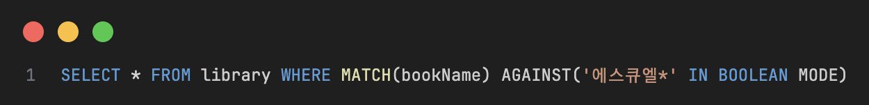 - bookName 열에서 'MySQL' 을 검색한다.