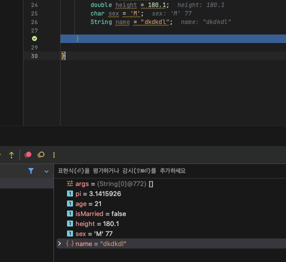 5. BreakPoint (빨간점) 찍어놓고 디버그 누르면 변수 잘나온다