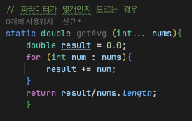 - 제약사항 : TS와 똑같이 알 수 없는 갯수의 경우 마지막에만 사용이 가능하다.
