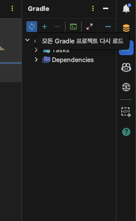 - 우측 Gradle 옵션에서 새로고침을 눌러 패키지를 설치한다.
