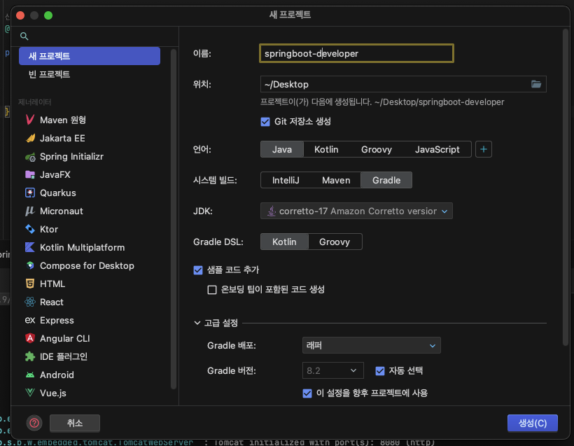 - JDK는 17버전, 빌드툴은 Gradle을 사용한다.