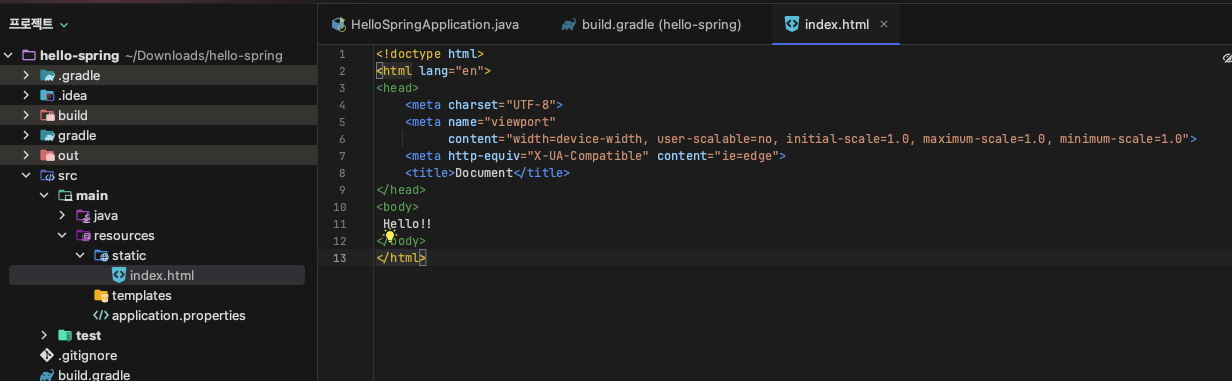 - `resources/static/index.html` 에 넣으면 알아서 됨