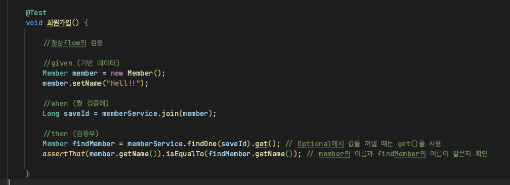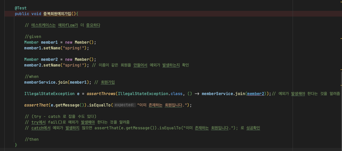 - 꿀팁 : 테스트케이스는 그냥 한글로 해도 상관 없다. 이거 좋네