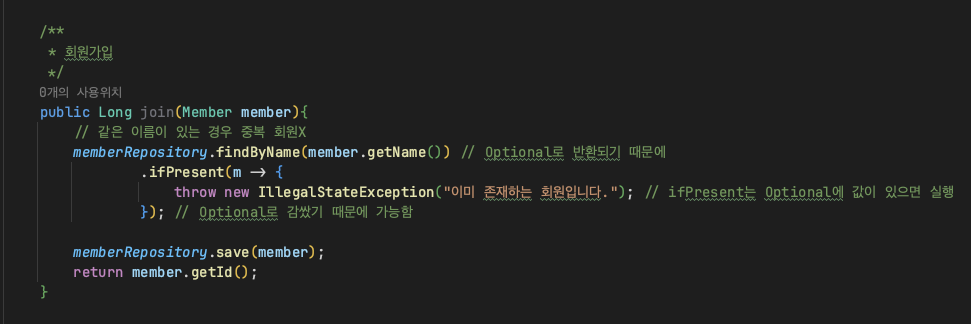 - 위와같이 작성해준 후 이런 경우 method로 뽑아내는 것이 좋다