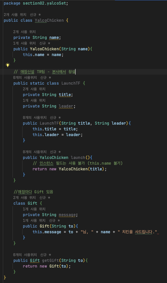 - 외부에 클래스를 따로 두는 것보다 훨씬 가독성과 관리성이 좋아진다.