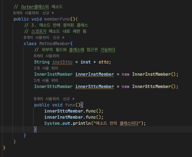- Outer 클래스의 메소드 부분