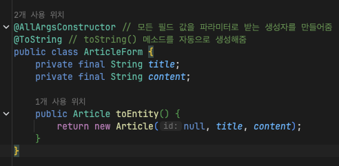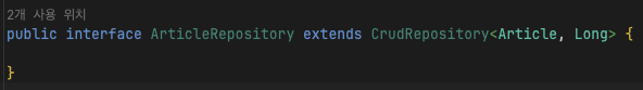 - 제네릭에는 관리 대상 엔티티의 클래스타입 , 관리 대상 엔티티의 대표값 타입이 들어간다 (<Article, Long>)