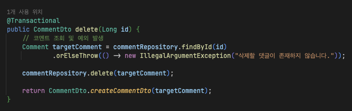 | [자율학습] 댓글 리포지토리 테스트 코드 작성 (0) | 2024.02.11 |