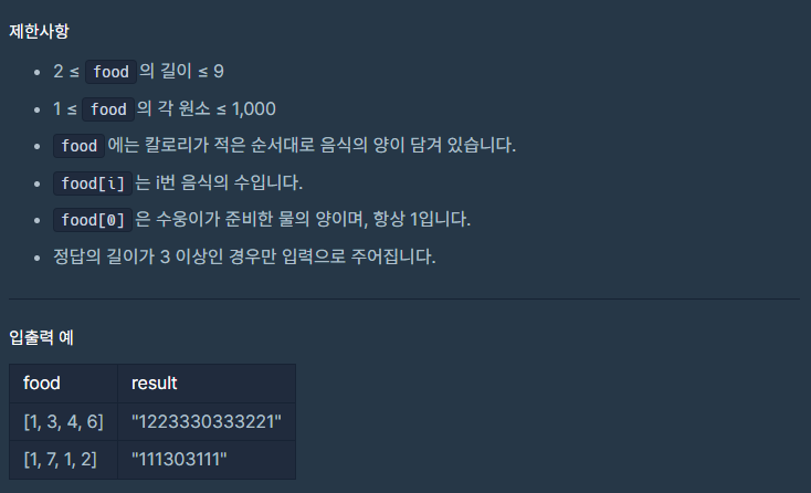 //str에 (총음식양/2)의 정수부분만큼 1부터 반복하여 추가해준다.