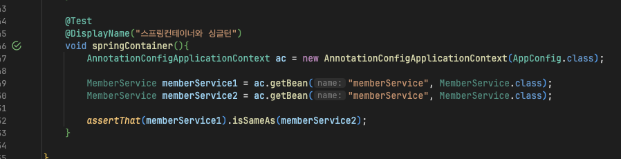 - 스프링컨테이너를 쓰면 객체를 모두 싱글톤으로 만들어서 관리해준다!