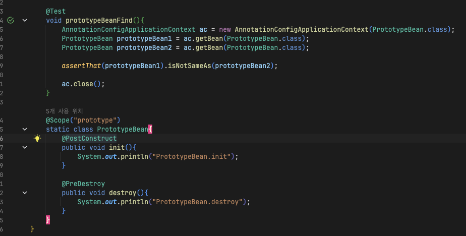 - 결론적으로 프로토타입빈을 사용하는 경우는 매우 드물다.