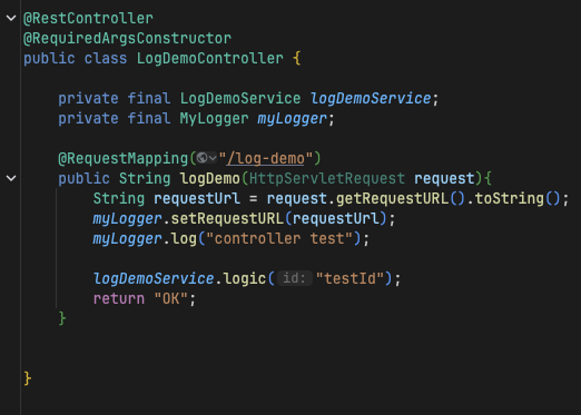 - MyLogger에 저장하는 부분은 컨트롤러가 아닌 공통처리가 가능한 스프링 인터셉터, 서블릿 필터를 활용하는 것이 좋다.