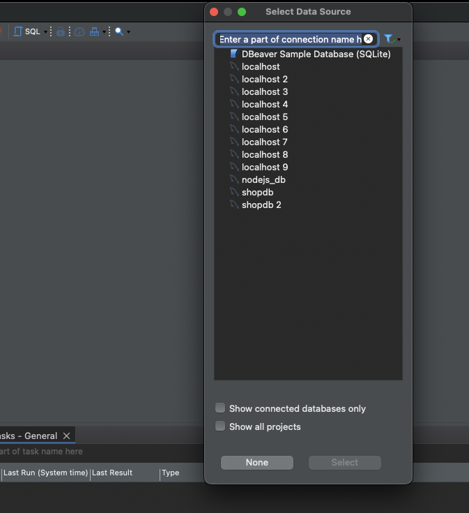 2. 좌측상단 SQL 누르면 dataSource 들이 나옴
