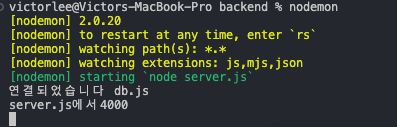 - 프로젝트 폴더로 돌아와서 npm i mongoose