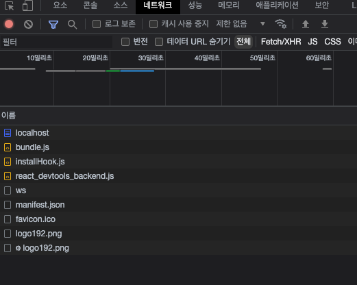 - 하지만 리액트에 별도로 설정하지 않으면 모든 컴포넌트의 코드가 모두 한 파일(main어쩌고)에 담기게 된다.